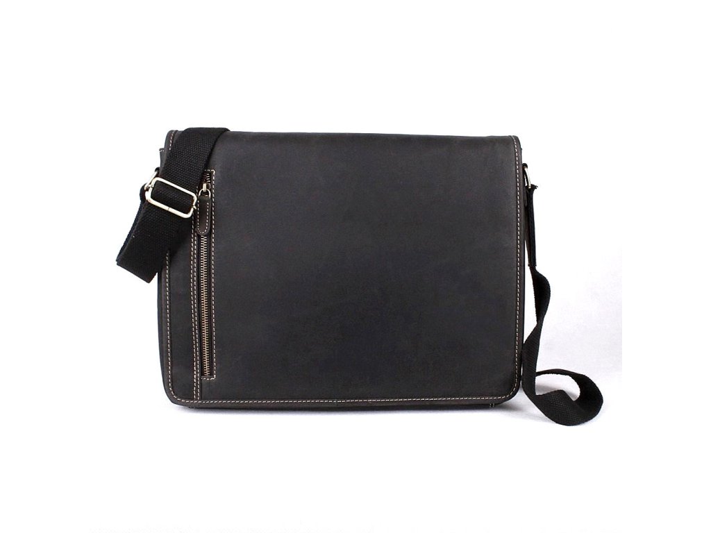 Velká tříoddílová crossbody kožená taška HGL o rozměrech 36,5 x 27,5 x 11,5 cm v černé barvě