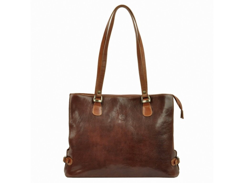Velká kožená tříoddílová kabelka na rameno Florence no. 14 tmavěhnědo-světlehnědá na formát A4