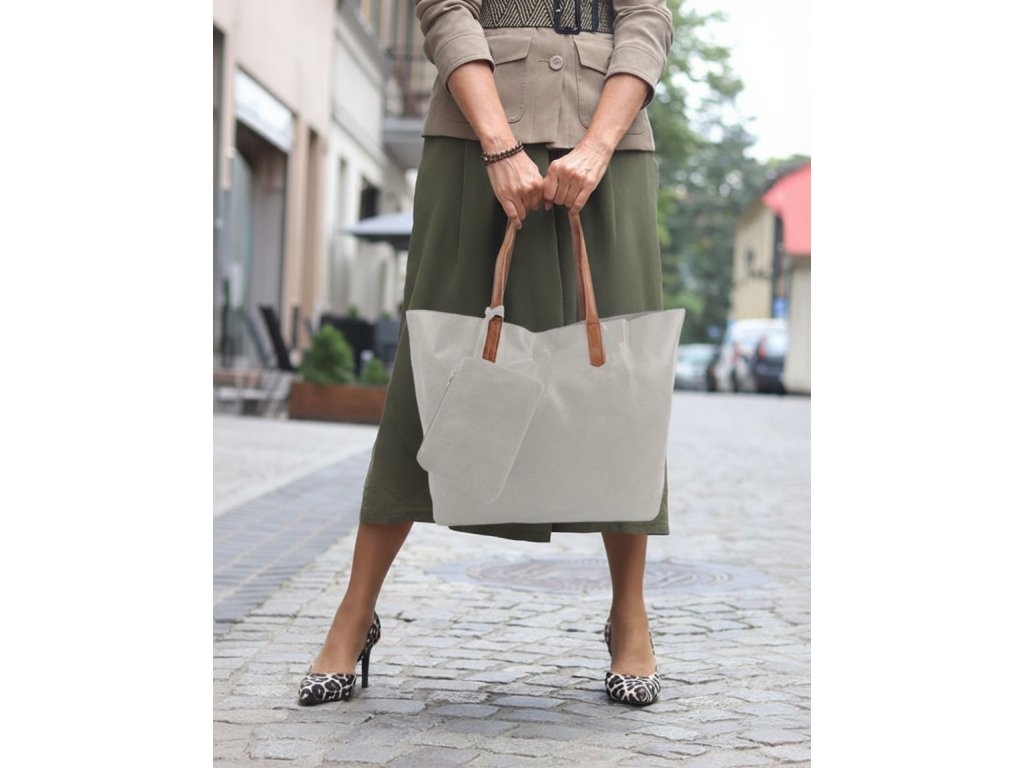 Velká světle šedá shopper dámská taška s crossbody uvnitř