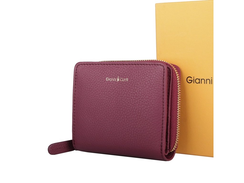 Krásná dvouoddílová malá značková celozipová kožená peněženka Gianni Conti ve fialovo-růžové barvě.