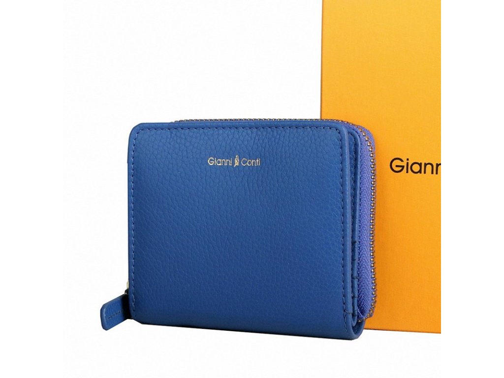 Krásná dvouoddílová malá značková celozipová kožená peněženka Gianni Conti v modré barvě.