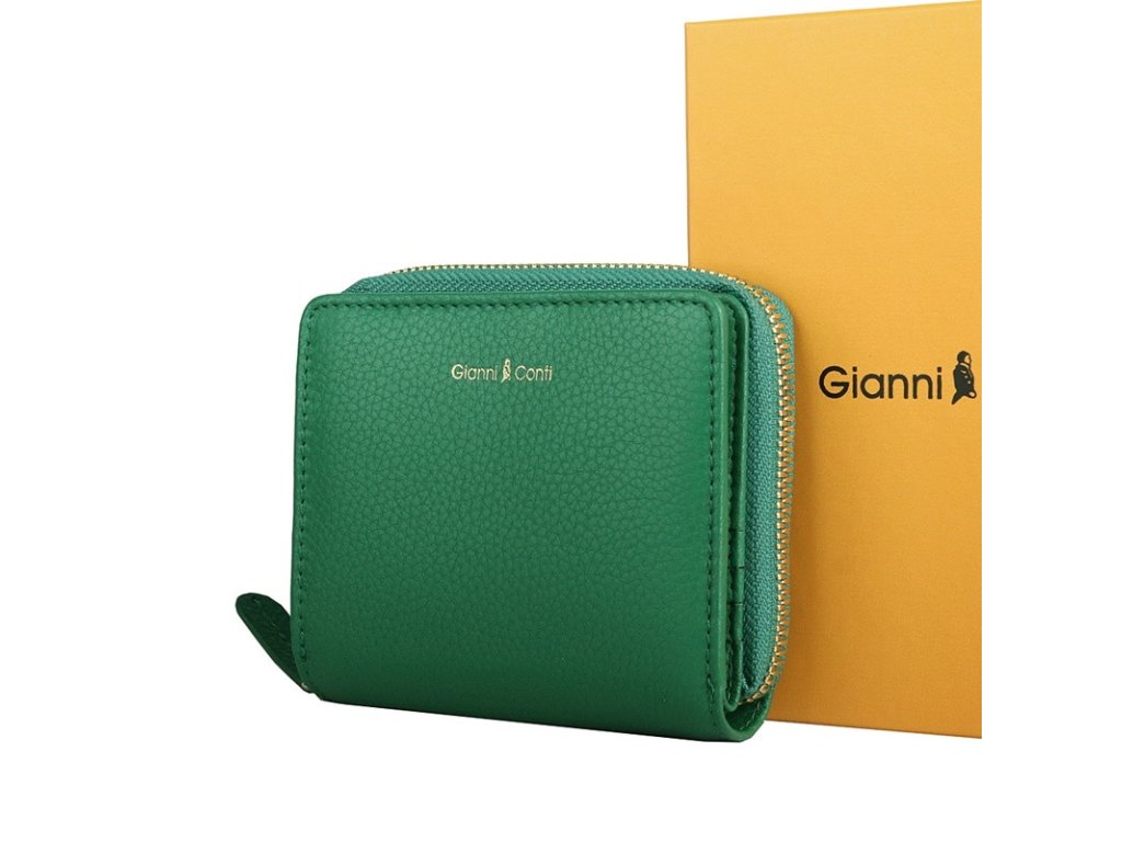 Značková malá dvouoddílová kožená celozipová peněženka Gianni Conti no. 158 zelená