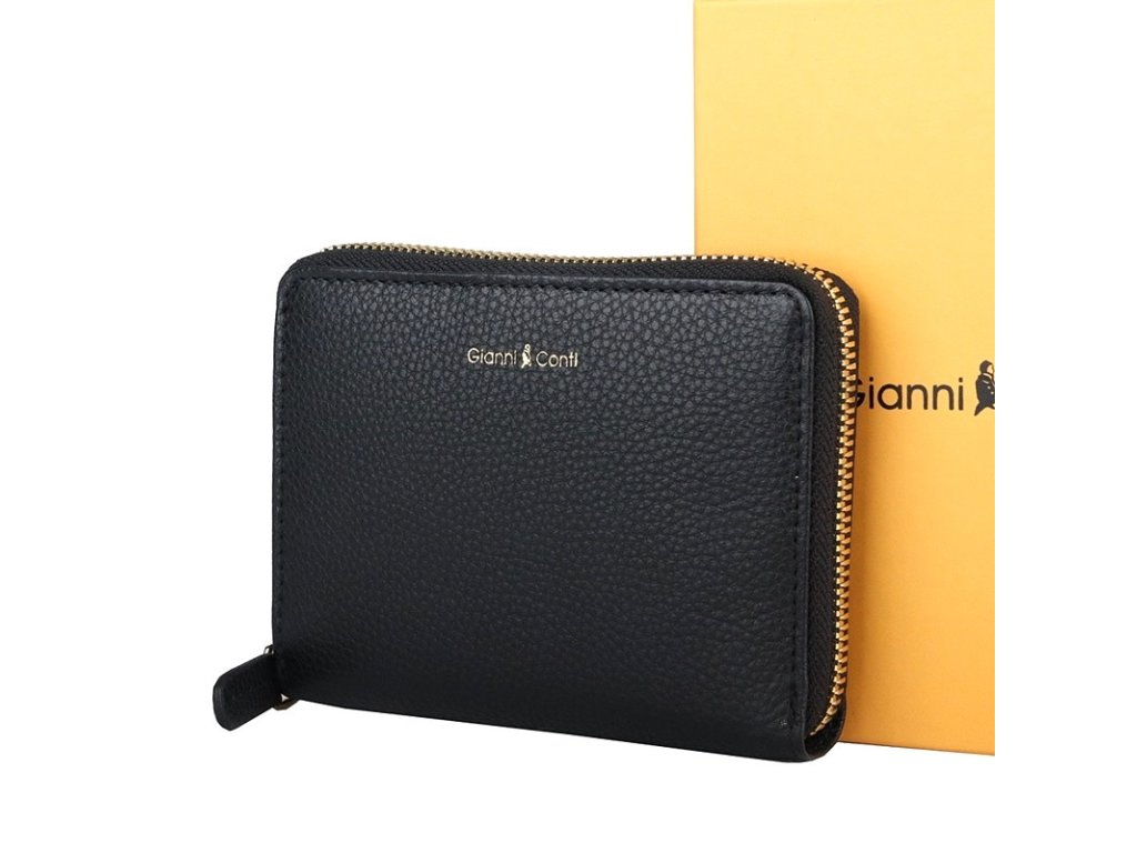 Krásná malá značková celozipová kožená peněženka Gianni Conti v černé barvě.